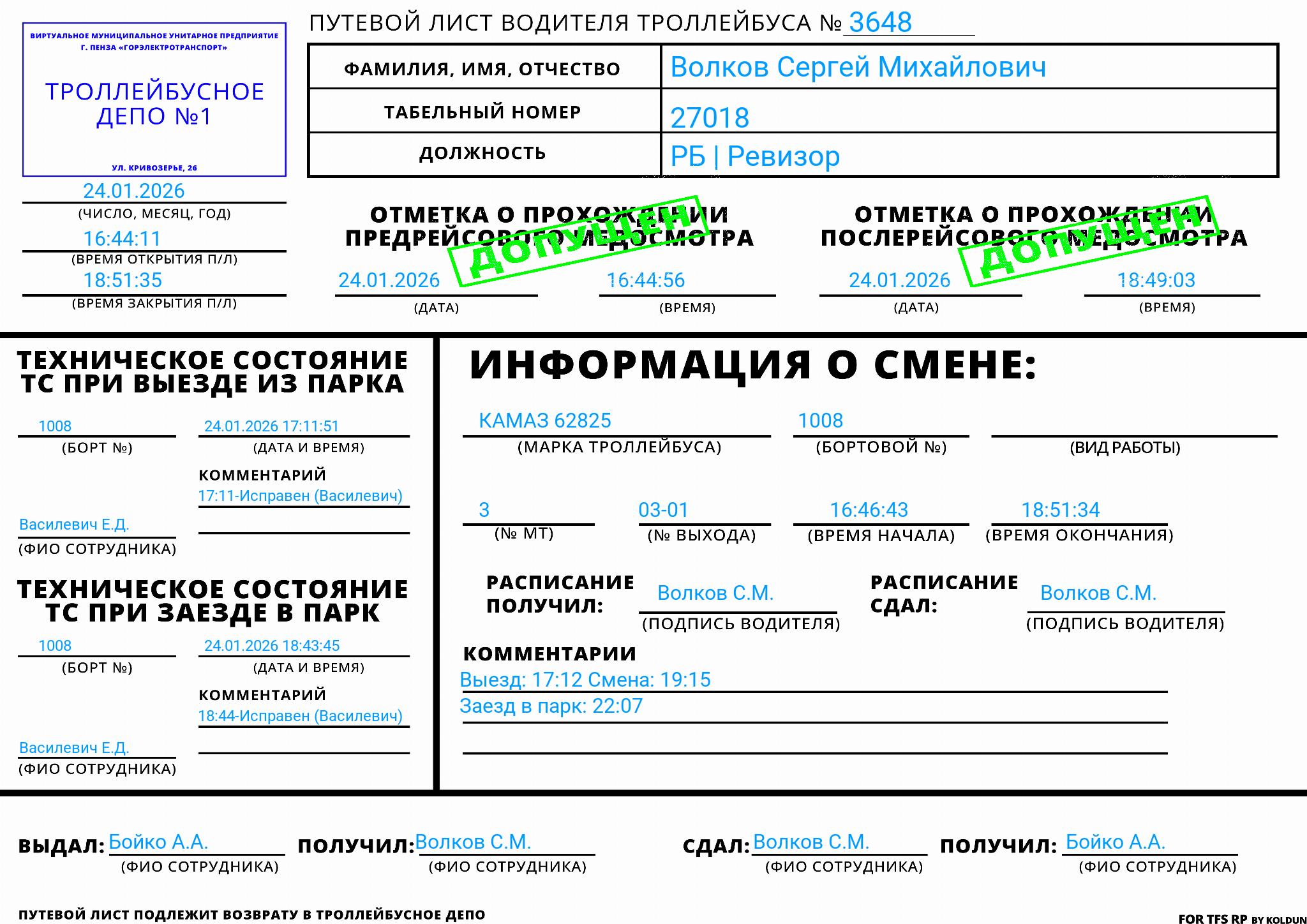 Путевые листы TFS RP